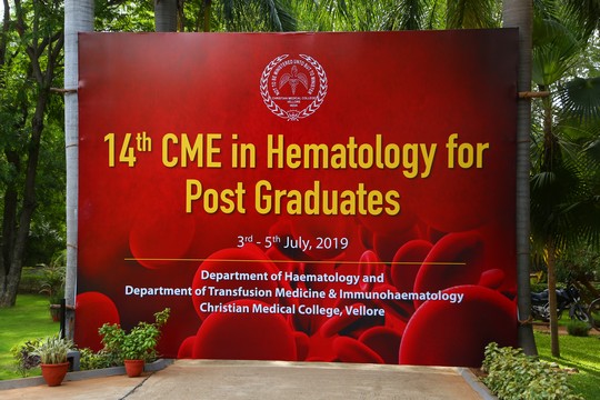 The Department of Haematology and Department of Transfusion Medicine & Immunohematology, Christian Medical College, Vellore are organizing the 15th Annual Post Graduate CME in Haematology from 21st to 22nd Oct, 2020.
